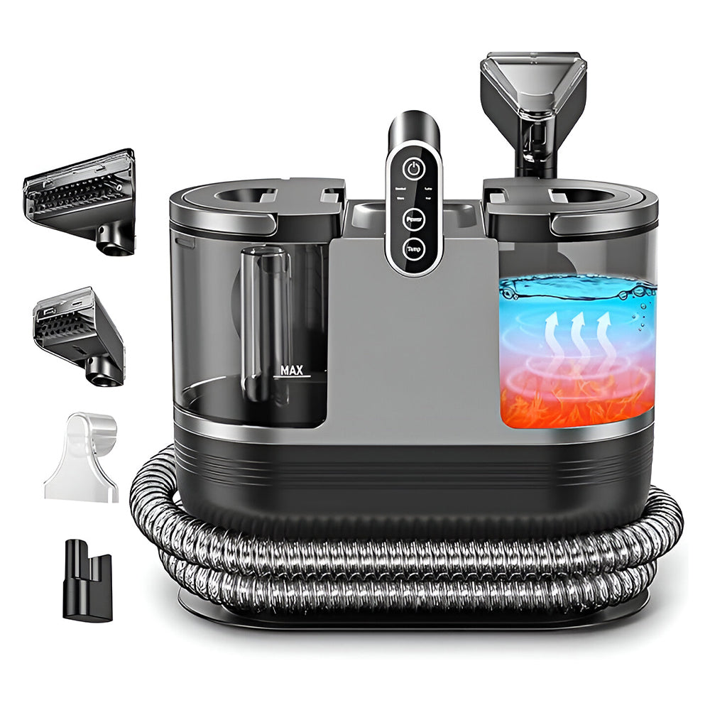 Descubre la nueva forma de limpiar profundamente tu hogar, coche u oficina con esta aspiradora de agua portátil con calefacción rápida. Alcanza los 140 °F en solo 15 segundos, permitiendo una limpieza más eficiente, rápida y segura. Su uso de agua caliente, sin químicos agresivos, la hace ideal para hogares con niños, mascotas o personas alérgicas.