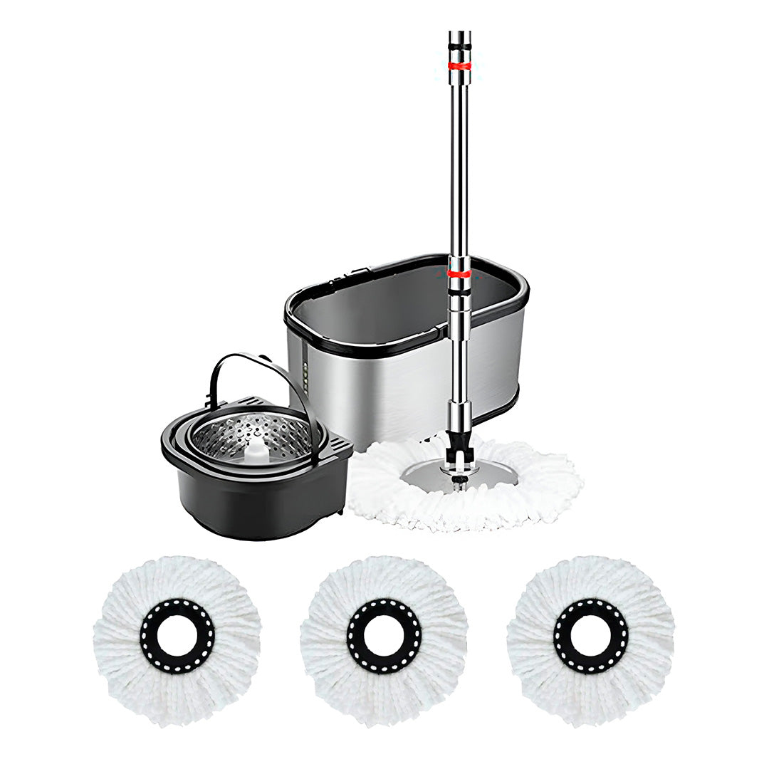¿Buscas una forma práctica, elegante y sin esfuerzo de mantener tu hogar limpio? El Kit de Limpieza Brandtrendy con cubeta giratoria color plata y 3 mopas de microfibra es la elección ideal.